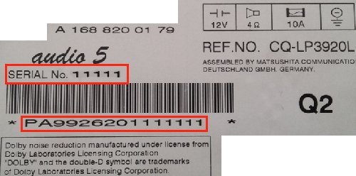 Unlock Auto Radio Code PANASONIC/MATSUSHITA PA9715 AUDIO 5 CQ-LP3720L / A 168 820 01 86