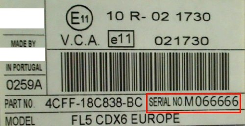 Radio Code Key LAND ROVER FL5 CDX6 EUROPE 4CFF-18C838-BB / VUX500170