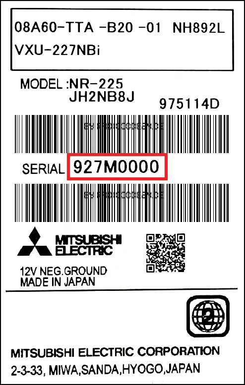Radio Code Honda Gathers VXM-207VFEi 08A40-PF6-B00-01 NR-225 JH0AL8J